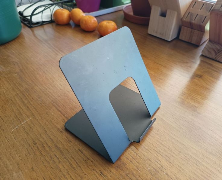 Bending the upright part to form a better viewing angle was quite easy. I gave it a sand with an orbital sander and finished with matt black spray paint. I added some stick on feet.