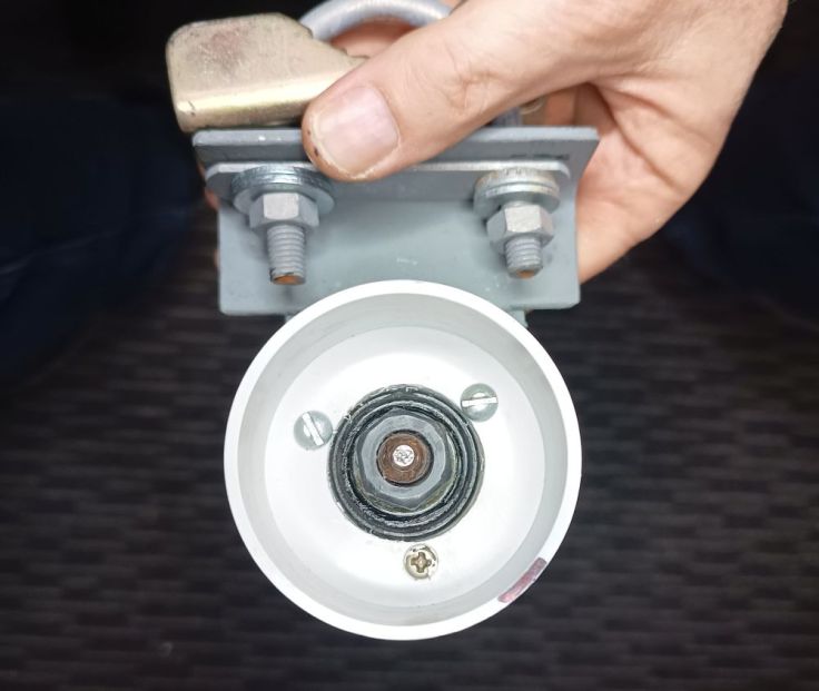 A small 6V solar panel has been mounted onto a TV masthead amplifier bracket I’ve been holding on to for about 40 years. See one day that junk does come in handy 🙂