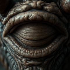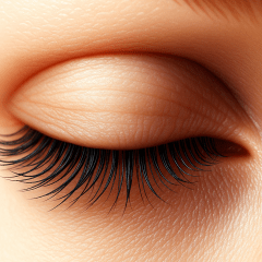 Fully closed: The same eye now fully closed. Lashes rest naturally, eyelid relaxed with smooth shading. Lighting and composition identical to previous frames for continuity.