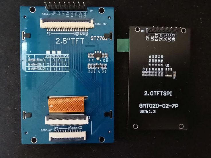 I also had a 2.8″ 240 x 320 display like the one here. This is the same resolution, but is larger, has a matte (less reflective) screen and a separate backlight. I preferred this so went with it.