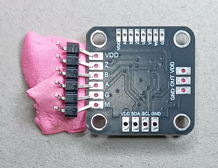 The original plan used a regular mechanical rotary encoder. I tested the software with one and it works with it. However, for my final build I’ve used a MT6701 magnetic angle senor that has a quadrature output. I dismantled an old potentiometer and glued a magnet to its shaft. This worked well, but it has the downside if not having a built in button like the mechanical rotary encoders do.