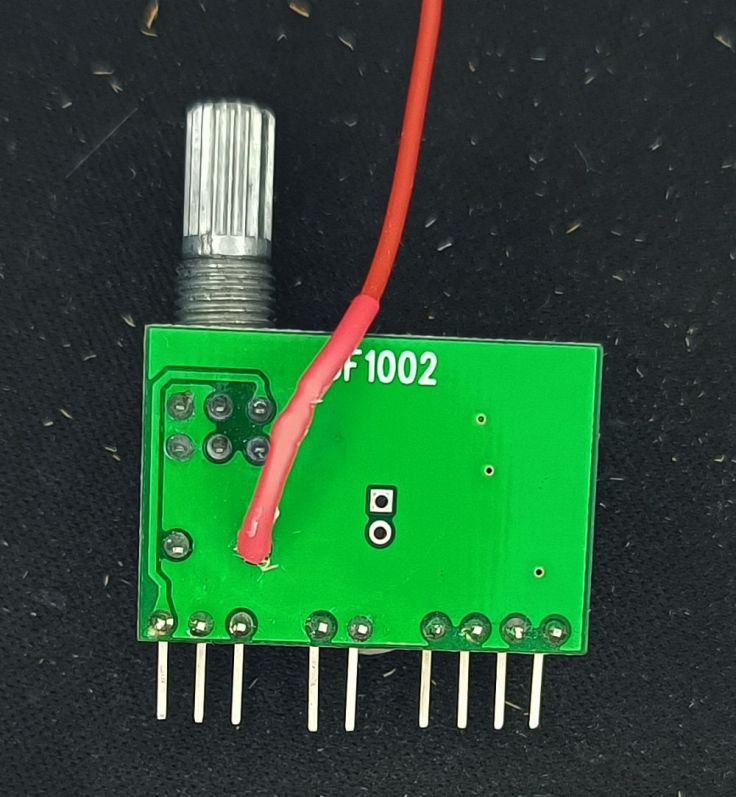 I soldered a header pin onto the module so I could easily reprogram the PPM if I wanted to. It’s not 2.54 mm pitch so some bodging was required. Notice, I’ve moved up to coloured BlueTack.