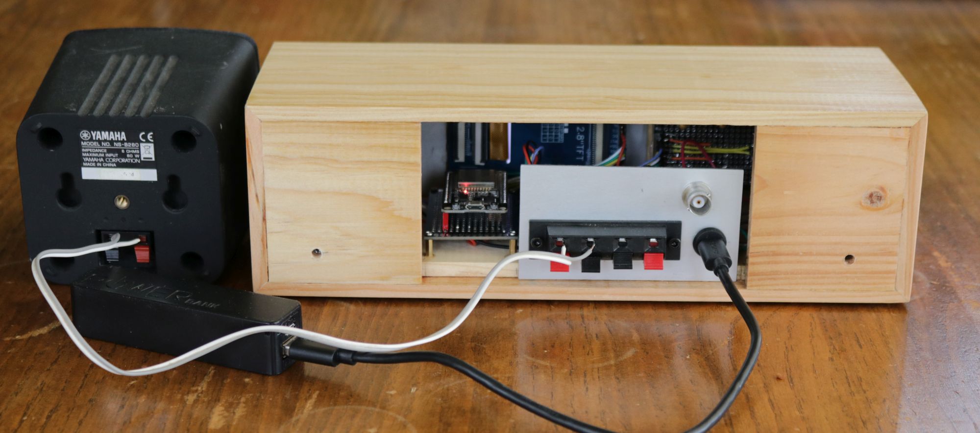 What this means is that a 3.5 mm headphone socket can’t be used for stereo, because that requires a shared ground. That’s not much of a problem for me as I don’t intend to use a headphone, nor FM which is the only stereo output from the SI4732. I could have just connected to 3.5mm one channel of the amp, but I had some speaker terminals so used those.