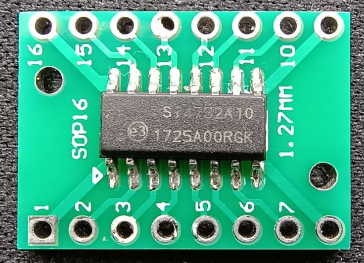 I started with a 16 pin IC breakout board and mounted the SI4732 IC.