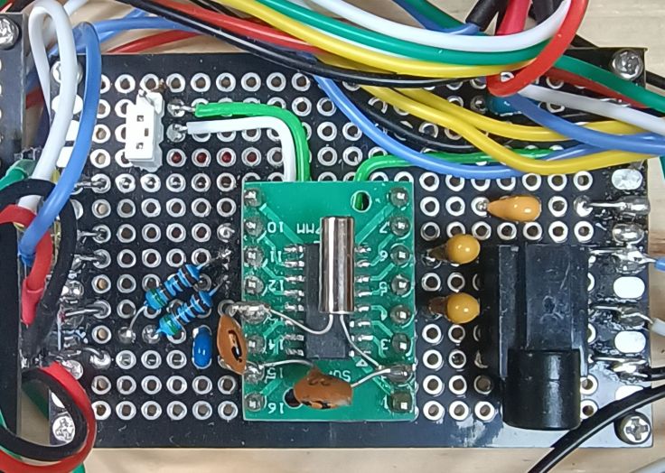I added the crystal and 2 x 22pF capacitors. For a while I used it like this, but it is very messy and I was thinking I could make a more complete module.