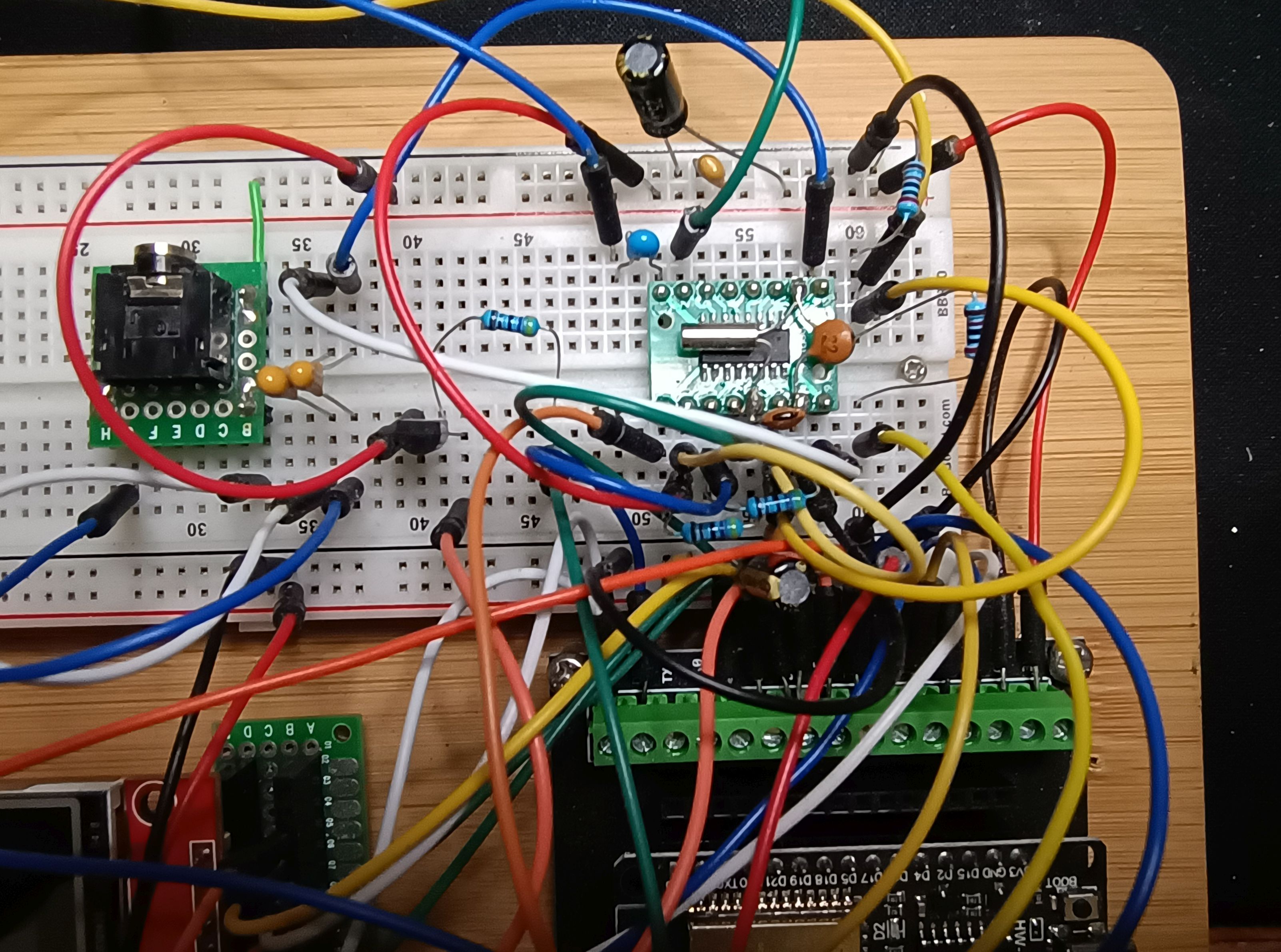 The software example I started with used an Arduino Pro Mini, but I wanted to use an ESP32. All the hardware I was using would run off 3.3V, although I’m running the amp from 5V. The ESP32 is fast and has enough pins for this project.
