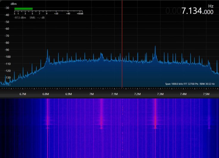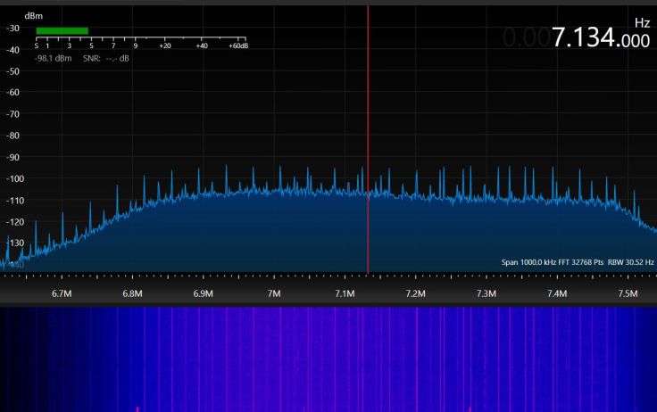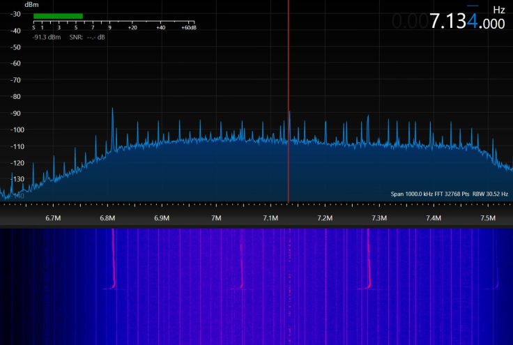 This one is with the Si4732 radio on with the volume turned to the minimum. Notice there are three heavier lines in the waterfall.