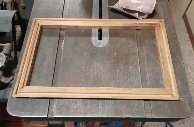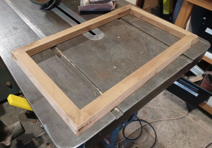 Back of the new grill. Before assembling it I cut a groove to push the cloth and glue into. I cut a spare groove in one end because I wasn’t paying attention.