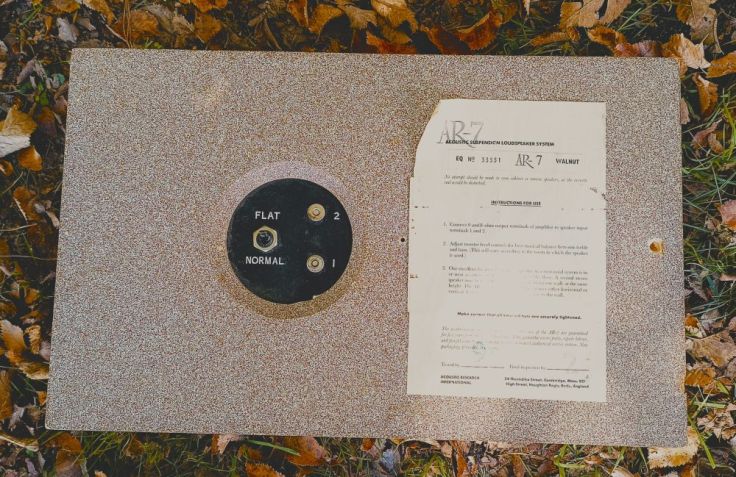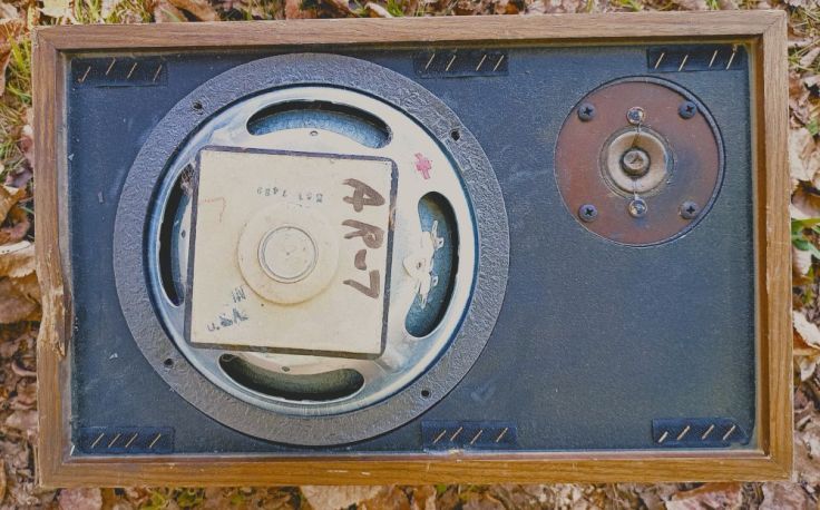 One day a single speaker cabinet caught my eye. What I noticed was that it had a badge with AR-7. I don’t know a lot about vintage speakers, but I do know a little about AR or Acoustic Research as it was also known. I know this as I purchased a pair of AR-16 speakers about 30 years ago and I use them every day with our TV. I grabbed the speaker and paid a few dollars and headed out.