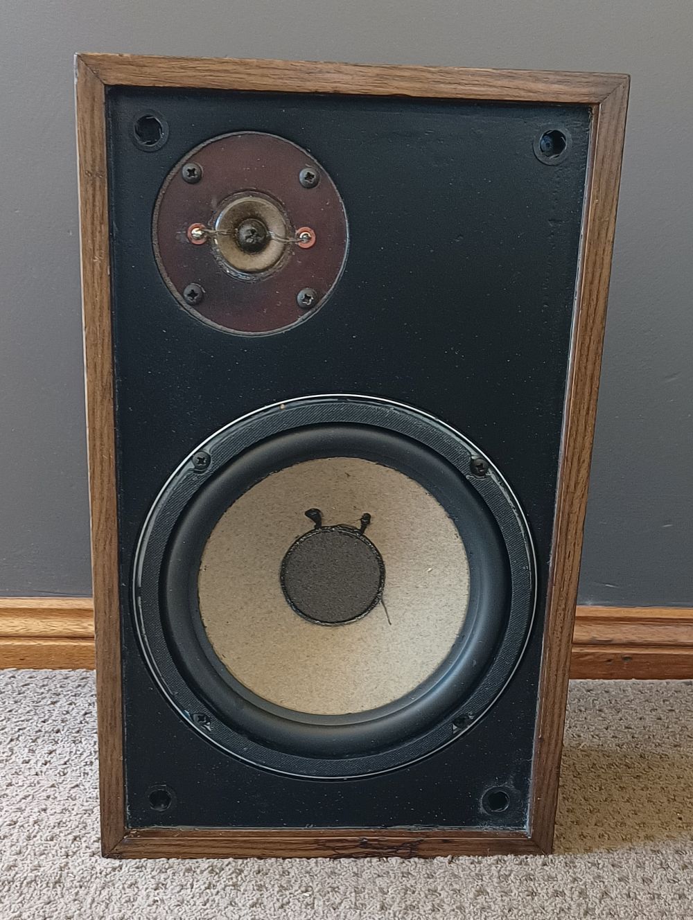 AR-7’s were produced around the early 70’s. They were sold as bookshelf speakers. I didn’t have high hopes. It was only one of a pair. There was a big dent in the bottom, presumably when it likely landed in one of the big tip bins. Also, the rubber surround on the AR-16’s I purchased had long crumbled, and they were only about 20 years old at the time. This one is over 50 years old. I expected this would need replacing.