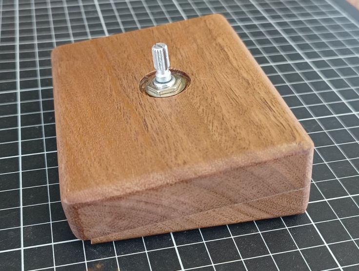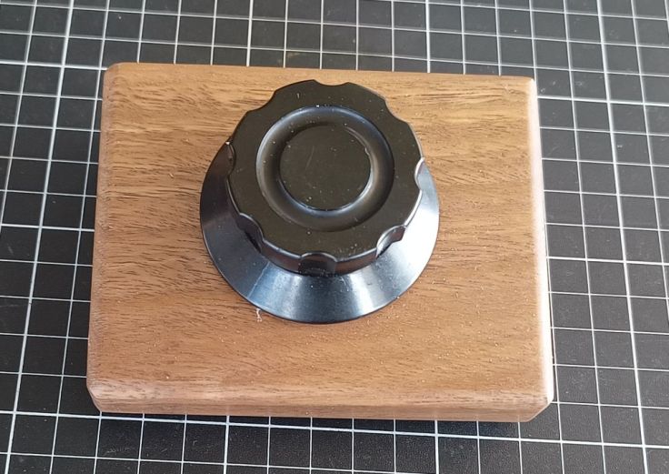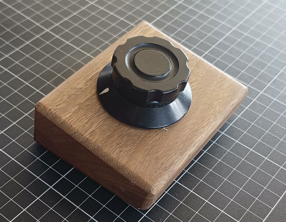 A while back I made a Tuning Wheel For SDR Radio on my PC Using an Angle Sensor. When plugged into a PC, this behaves as a mouse wheel. I’m using it as a tuning knob for SDR software. It works well but I was never very happy with the enclosure. I guess ‘enclosure’ is not really the correct term as it was more of a mount. It was made from a few bits of pine and while it was sturdy, I wanted it to be a bit prettier, because I’m superficial like that 🙂